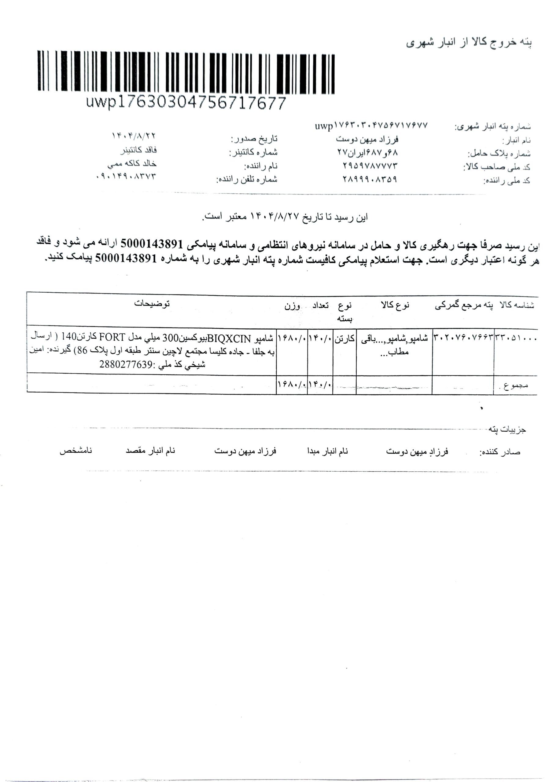 برای سفارش بالای 5 میلیون زیر 5 کیلو